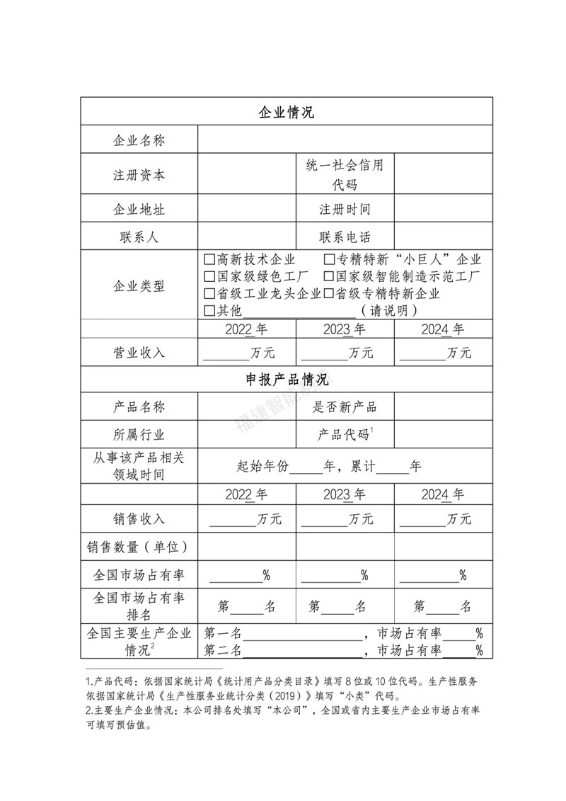 福建省工业和信息化厅关于开展2025年省级制造业单项冠军申报和日常管理工作的通知
