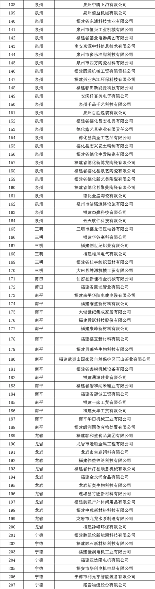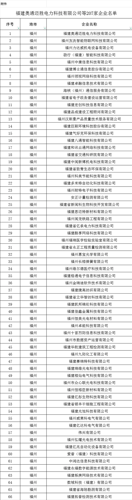 附件:福建奥通迈胜电力科技有限公司等207家企业名单